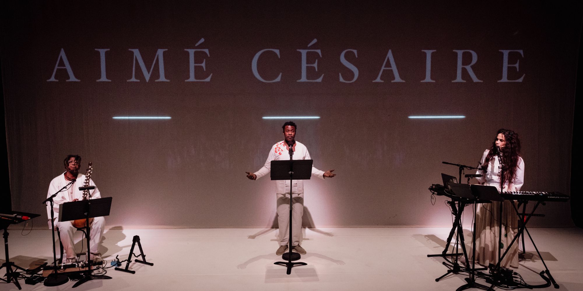 Que va-t-il rester de nous ? De nos histoires ? Que restera-t-il de nos mémoires quand nous disparaîtrons ? Que restera- t-il de la langue ? De la littérature ? Quel monde laisserons-nous aux générations futures ? Comment la nature renaîtra, plus florissante, plus puissante encore ? Magnétique, Adama Diop s’empare de l’Apocalypse pour un voyage musical entre dystopie et poésie. Entouré par Dramane Dembélé, musicien multi-instrumentiste et Jessica Martin-Maresco, au chant, au clavier et à l’interprétation, il tisse son propre récit à la fulgurance puissante du Cahier d’un retour au pays natal du grand poète martiniquais Aimé Césaire.